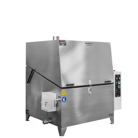 Температура и продолжительность цикла обработки задается на панели управления. Вращение корзины обеспечивает необходимое позиционирование деталей перед коллекторами. Парная П-образная форма рамп позволяет промывать изделия сверху, снизу и сбоку в течение заданного времени. Автоматические промывочные установки серии АМ предназначены для использования со слабощелочными растворами. Для наполнения бака используется обычная водопроводная вода.