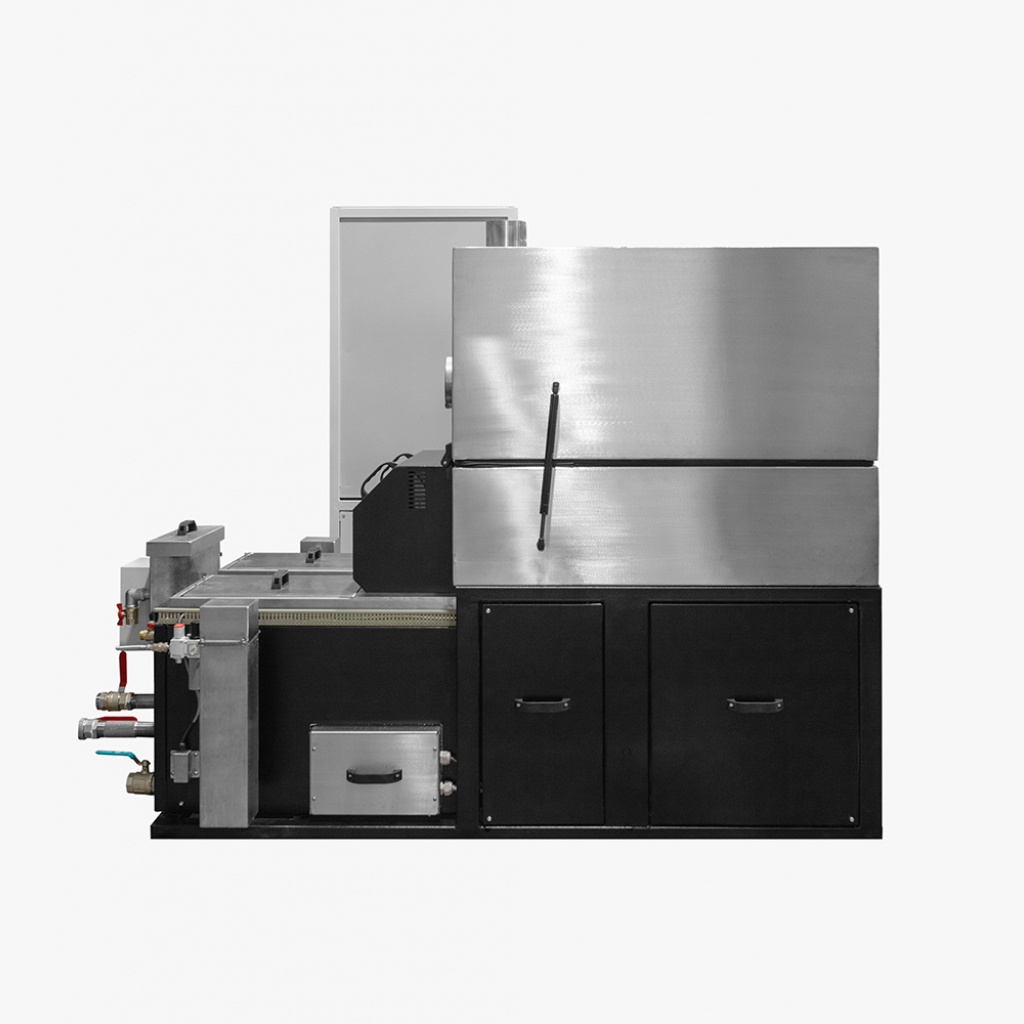 Небольшие габариты и возможность программирования каждой стадии очистки являются основными конкурентными преимуществами промышленной двухстадийной мойки. Все циклы мойки: промывка деталей моющим раствором и стадия ополаскивания осуществляются в автоматическом режиме. Моечная установка комплектуются электромеханическим приводом движения корзины. Корзина с деталями вращается равномерно с частотой 5-10 об/мин. Это обеспечивает высокое качество очистки за счет равномерной подачи моющего раствора по всей поверхности деталей.