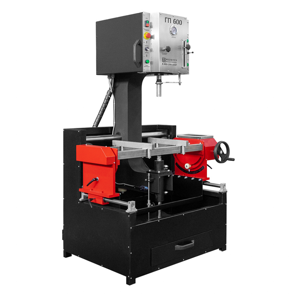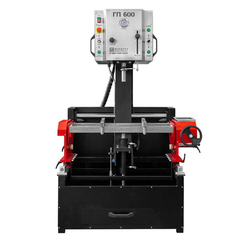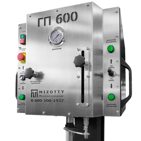 ГП600 – это рамная конструкция, на которой смонтированы поворотный стол для установки и фиксации головки, вертикальный кронштейн с гидроцилиндром и пинолью, в которую устанавливают оправки для выпрессовки и запрессовки направляющих втулок. В комплект стенда входи масляный насос. Кронштейн установлен на направляющих рамы с возможностью легкого перемещения в горизонтальном направлении, что обеспечивает возможность быстрого и точного центрирования оправок с осью установочного отверстия в головке для втулок. Поворотный стол предназначен для установки головок с наклонной осью клапанов относительно их привалочных плоскостей. Стенд оснащен вспомогательными устройствами для центрирования и управления процессом выпрессовки и запрессовки направляющих втулок. Данный стенд обладает опцией рассухаривания и засухаривания ГБЦ.