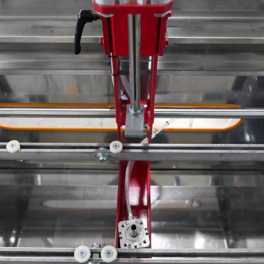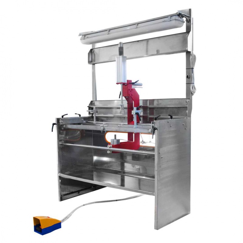 Для удобства, рабочая область освещается специальной подсветкой, а пневматический цилиндр передвигается в стороны. Рабочий стол оснащен механизмом вращения в обе стороны.