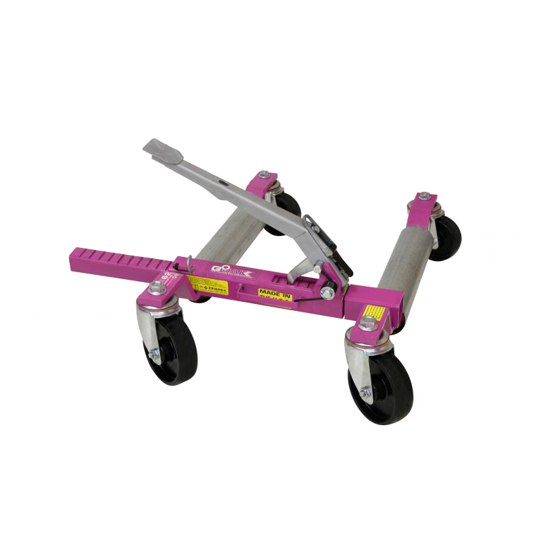 Колесная тележка GoJak (Serenco, Голландия). Разработана для облегчения передвижения транспортных средств, которые не могут быть перемещены своим ходом в мастерских, выставочных залах и магазинах, а также неоценима для автостоянок и аварийно-спасательных служб. Эта система поднимает любой автомобиль в считанные секунды с помощью нескольких нажатий на педаль и позволяет переместить его в любом направлении (при использовании 2 –х пар) или повернуть (при использовании 1 пары). Позволяет автомобилю маневрировать, не запуская двигатель даже в самых маленьких пространствах. Устанавливаются под колесо макс. диаметром 914 мм и шириной 320 мм., нагрузка на одну тележку до 715 кг. Вес автомобиля до 2860 кг.