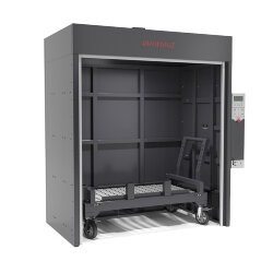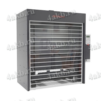 Зарядный десульфатирующий шкаф серии УКС.Ш–120-30-10 предназначен для заряда и десульфатации (восстановления) всех типов кислотных и щелочных аккумуляторных батарей (АКБ) пассажирских вагонов, локомотивов и любого типа городского электротранспорта. Изделие позволяет обслуживать аккумуляторные батареи объединенных в группы напряжением до 120В. Таким образом можно заряжать как 1 аккумулятор, так и группу из нескольких АКБ. Для удобства установки аккумуляторов внутри шкафа предусмотрена специальная тележка.